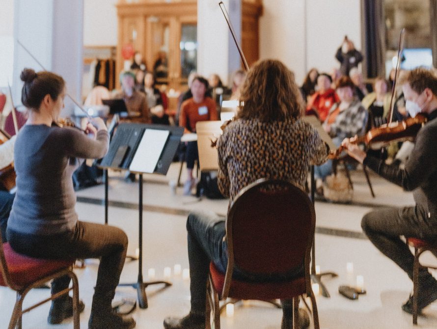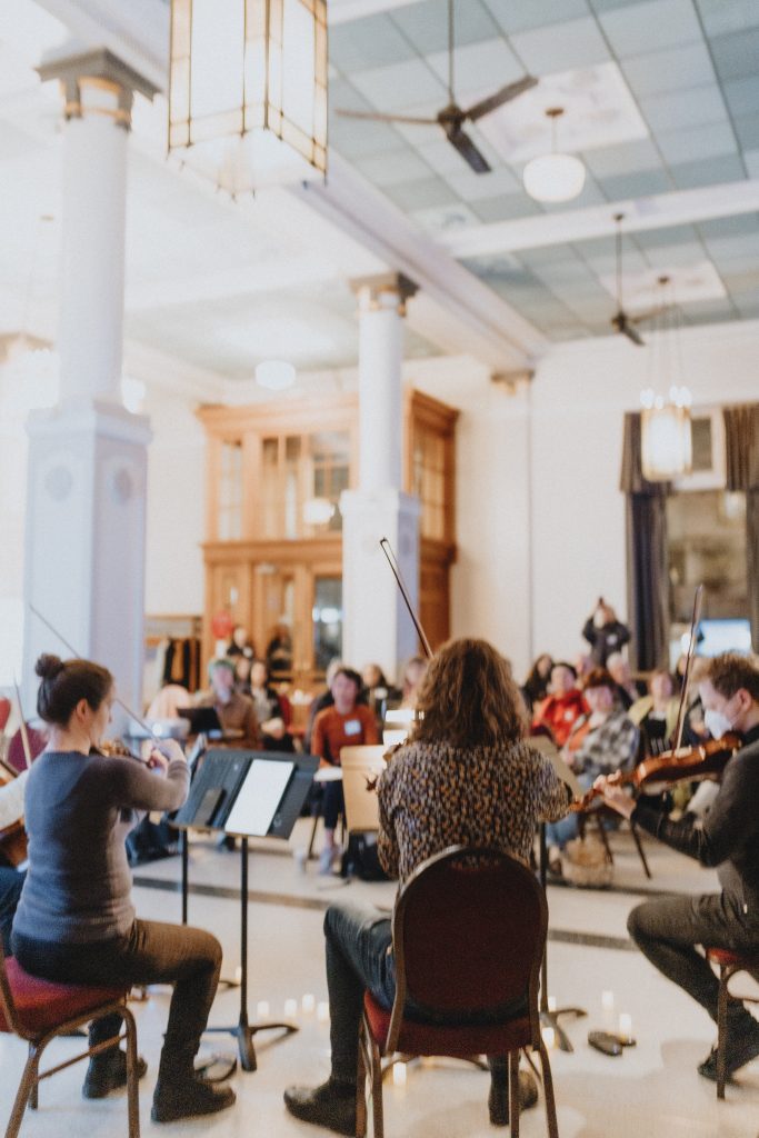 We were blown away by the response we got at the end of the evening. We took some big risks with our program because we wanted to push our guests and the musicians to be a part of the event together, rather than the transactional audience/performer/host relationship, and thankfully we had a very willing group. Opening an event by asking a group of strangers to sing with each other created a magical experience where everyone was willing to be vulnerable, and this set the tone for the rest of the evening and created some really deep discussions later on. We also hired the most wonderful string quartet who were game to try something different.