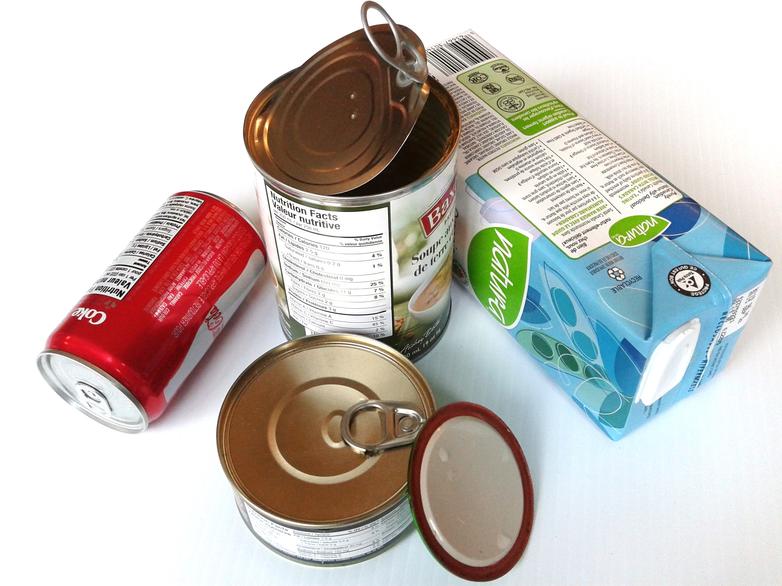 - Food: Food can linings (Bisphenol A-free or not), plastic stickers on fruit, milk cartons and metal bottle caps with inner plastic linings commonly found as lids of glass bottles. Examples include: Perrier water, olive oil or beer bottles.