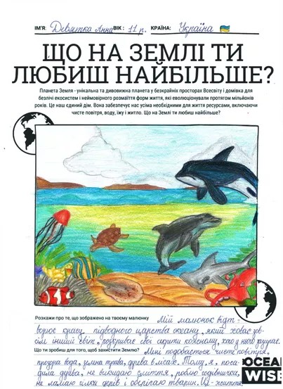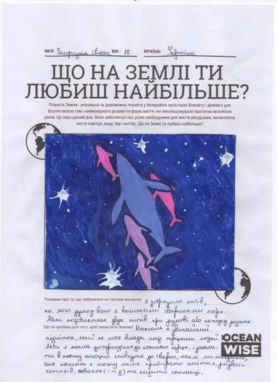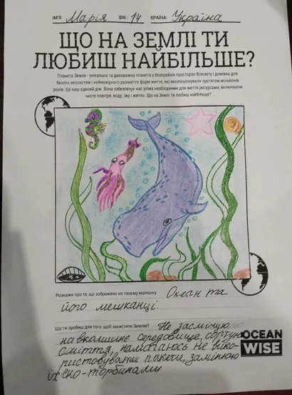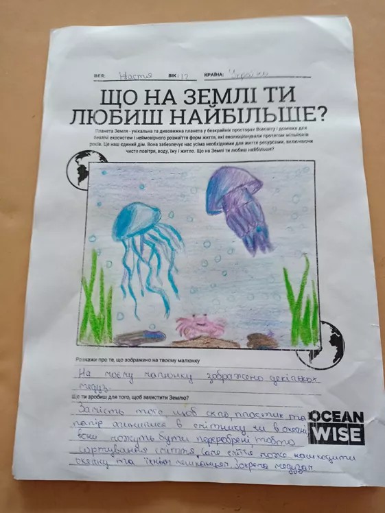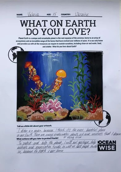 The Art Challenge received an overwhelming number of responses, totalling over 2000 entries! A majority of entries came from children and youth in Ukraine through our partnership with international education non-profit Classrooms Without Walls. Read more about our partnership and work delivering online ocean education to students around the world in our blog post here.