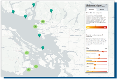 The Pollution Tracker Program is the first coast-wide contaminant monitoring program in Canada. In partnership with multiple partners – First Nations communities, community organizations, port authorities, industry, and government agencies – hundreds of chemicals are being analyzed in marine sediment and shellfish to track trends over space and time. Pollution Tracker provides baseline data for a wide range of contaminants that help us identify the source, as well as determine risks to marine life – like killer whales. Importantly, our findings also help inform the effectiveness of regulations and best practices for future planning.