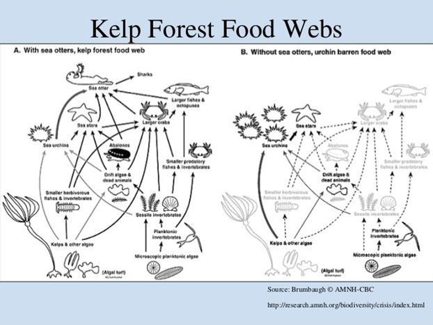 Looking one step further, now that there is a surplus of sea urchins and there is nothing to keep their population in control, they consume more seaweed and kelp to feed the rapidly expanded population. This reduces the seaweed and kelp population. Although this paper does not explicitly say, the same can occur if the sea otter population was to rapidly spike. The sea urchin population would decrease causing the kelp and seaweed populations to drastically increase.