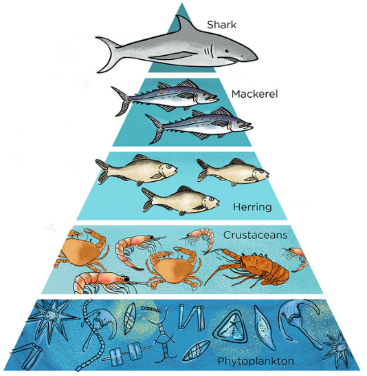 This diversity is connected and interacts through the ecosystem food web and trophic pyramid.