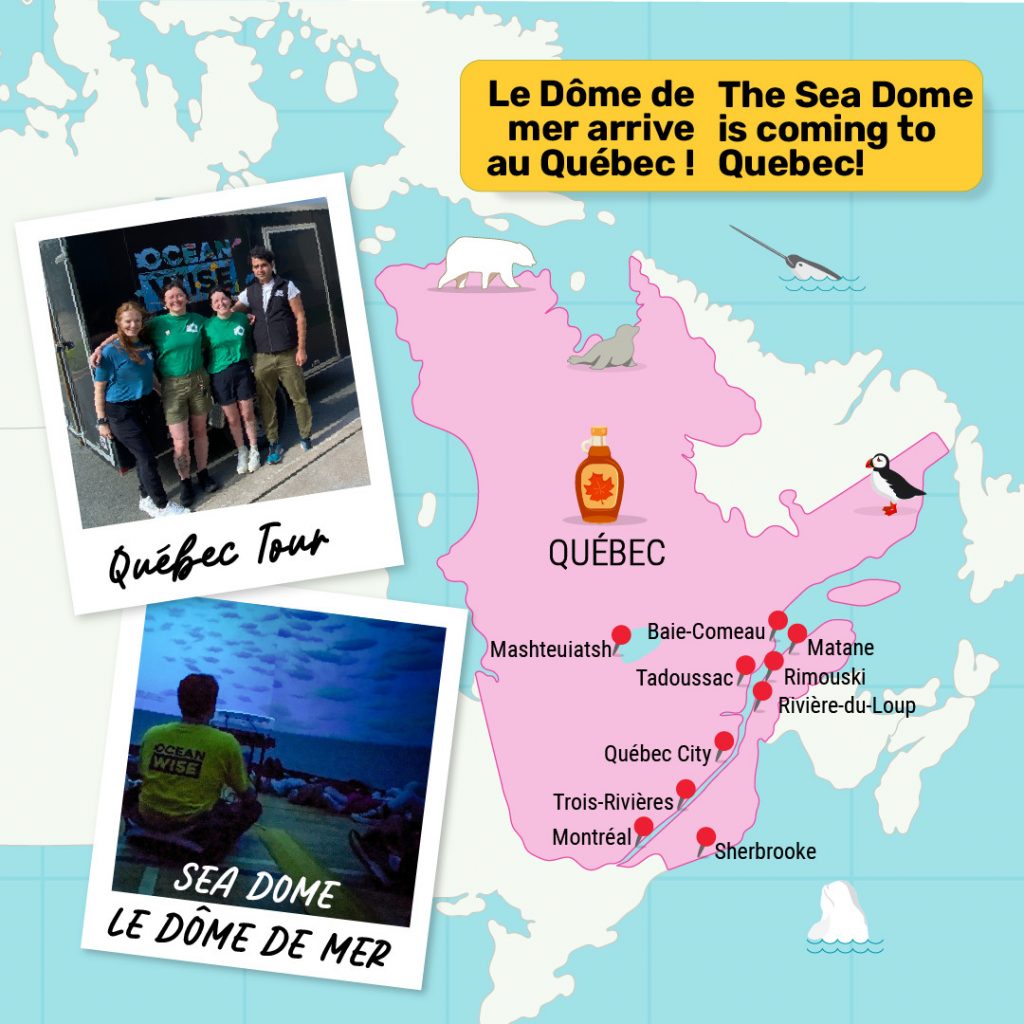 Ocean Wise sera au Québec pour visiter les écoles et les communautés avec l’expérience GRATUITE du dôme de mer ou des artefacts marins. Pour réserver, envoyez un courriel à [email protected].
