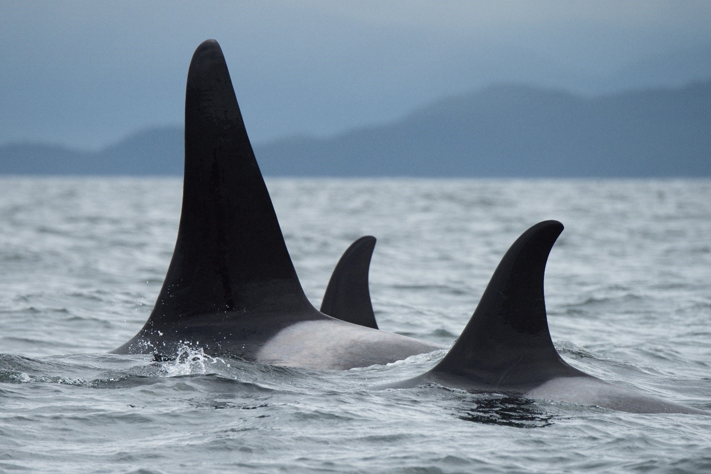 Nageoires dorsales des membres du groupe matrilineal A34 des épaulards résidents du Nord.