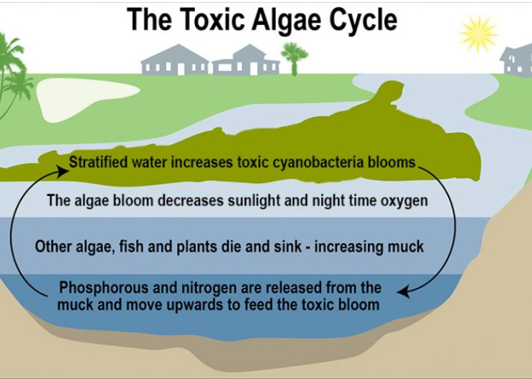 Principalement, les principales sources de croissance des algues (eutrophisation) proviennent du ruissellement (attribué à une agriculture et des systèmes d’eaux usées non durables), entraînant ainsi une hausse des nutriments. Avec les changements actuels, la montée du niveau de l’eau et la hausse des températures dues au changement climatique, la quantité de nutriments se mélangeant à l’eau forme le substrat. On estime (de 2003 à 2020) que les proliférations d’algues ont augmenté d’environ 13 % ; cela représente 1,5 million de miles carrés supplémentaires subissant une eutrophisation dans le monde (Harvey, 2023).