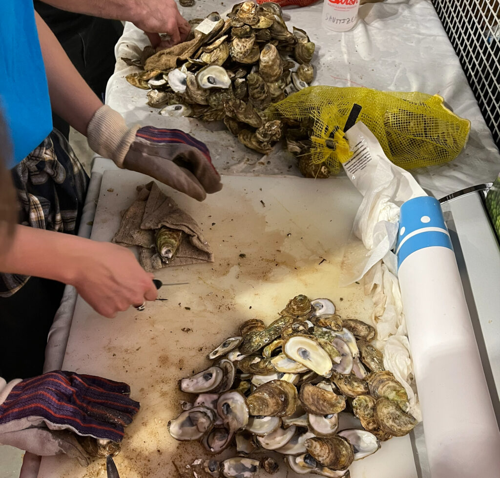 Les membres de l’équipe de Halifax, Sam Renshaw, Scott McIlveen et Cassidy Walker, ont passé la fête à écailler aux côtés d’Afishionado, à animer un jeu interactif sur les fruits de mer durables et à discuter avec les gens des merveilles de ces bivalves.