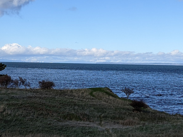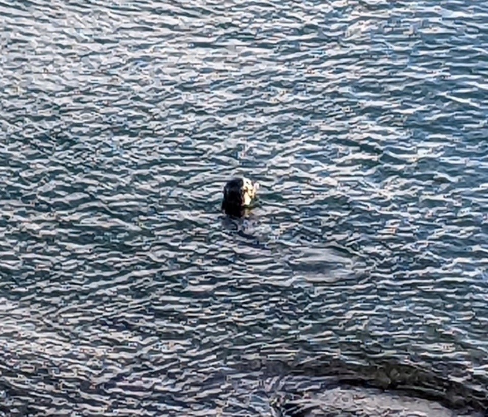 Dès notre arrivée, nous avons aperçu un marsouin commun et nous sommes précipités chercher notre équipement. C’était le premier marsouin commun que je voyais. Sa petite nageoire dorsale grise est apparue en nageant près de nous. Peu de temps après, Stinky, le phoque commun, apparut juste en dessous de nous, près du rivage. Stinky fit plusieurs autres apparitions tout au long de l’enquête. En regardant le détroit de Géorgie, il était difficile de ne pas se laisser distraire et de regarder au loin à travers mes jumelles.