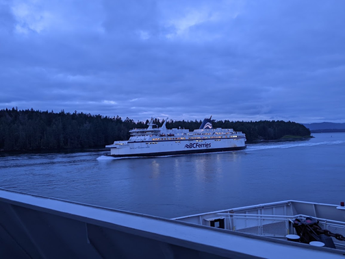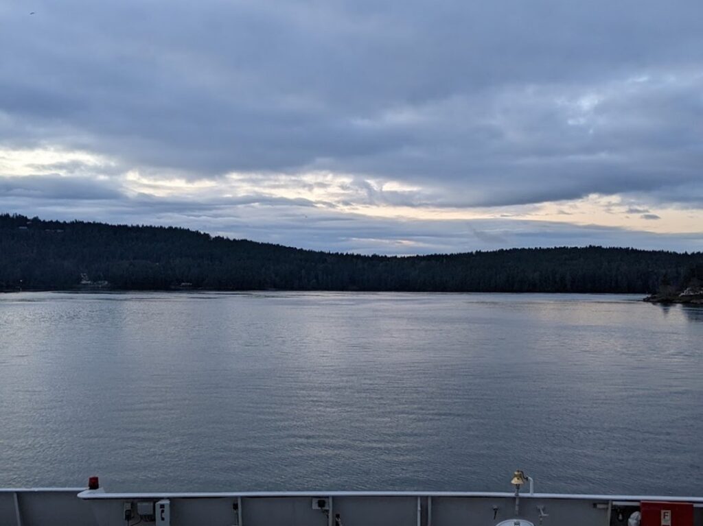 Dans le cadre de mon stage Ocean Bridge Direct Action avec le BC Cetacean Sightings Network (BCCSN), j’ai eu l’opportunité de participer à une étude de marsouins communs sur l’île Saturna. Je me suis réveillé à 5h du matin le premier jour, excité par le voyage. En me dirigeant vers le terminal de ferry de Tsawwassen, le ciel était d’un noir profond. C’était la première fois que je montais à pied sur un ferry.