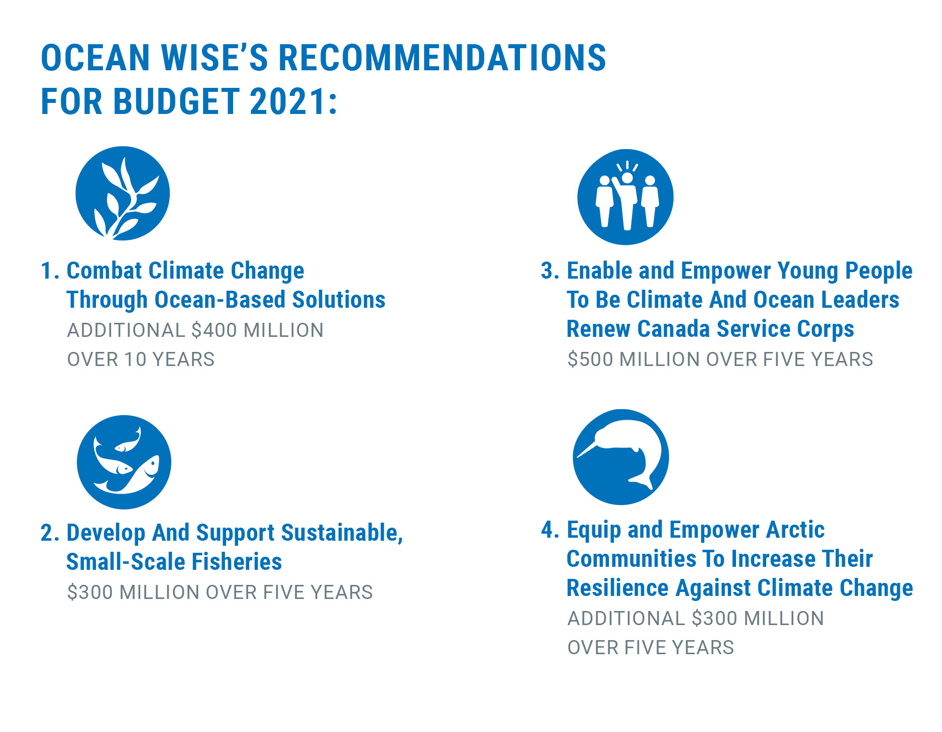 Ocean Wise se réjouit de voir un certain nombre d’engagements majeurs liés à la protection et à la récupération de nos océans – dont certains sont des investissements historiques. En particulier :