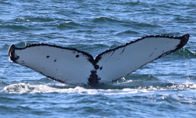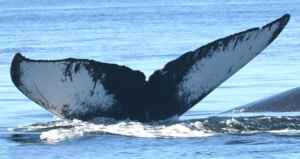 Après que toutes les photos de la saison aient été traitées et que toutes les baleines aient été vérifiées. Enfin ! C’est arrivé… le jour du baptême ! C’est toujours un jour que nous attendons avec impatience parce que c’est tellement amusant, et nous essayons d’être aussi créatifs que possible, tout le monde peut donner son avis et nous votons pour le meilleur nom proposé. Vous trouverez ci-dessous quelques-uns de nos noms préférés de cette saison. Laissez-nous vous présenter quelques-uns de nos nouveaux favoris. Nous espérons revoir ces baleines au cours de la nouvelle année, après leur long voyage vers le sud. Dans la plupart des cas, les baleines sont nommées en fonction des caractéristiques observées sur leur nageoire dorsale afin de faciliter leur reconnaissance lorsque nous les reverrons. Nous espérons que vous apprécierez certains de ces noms farfelus et que vous comprendrez pourquoi on leur a donné les noms qu’on leur a donnés.