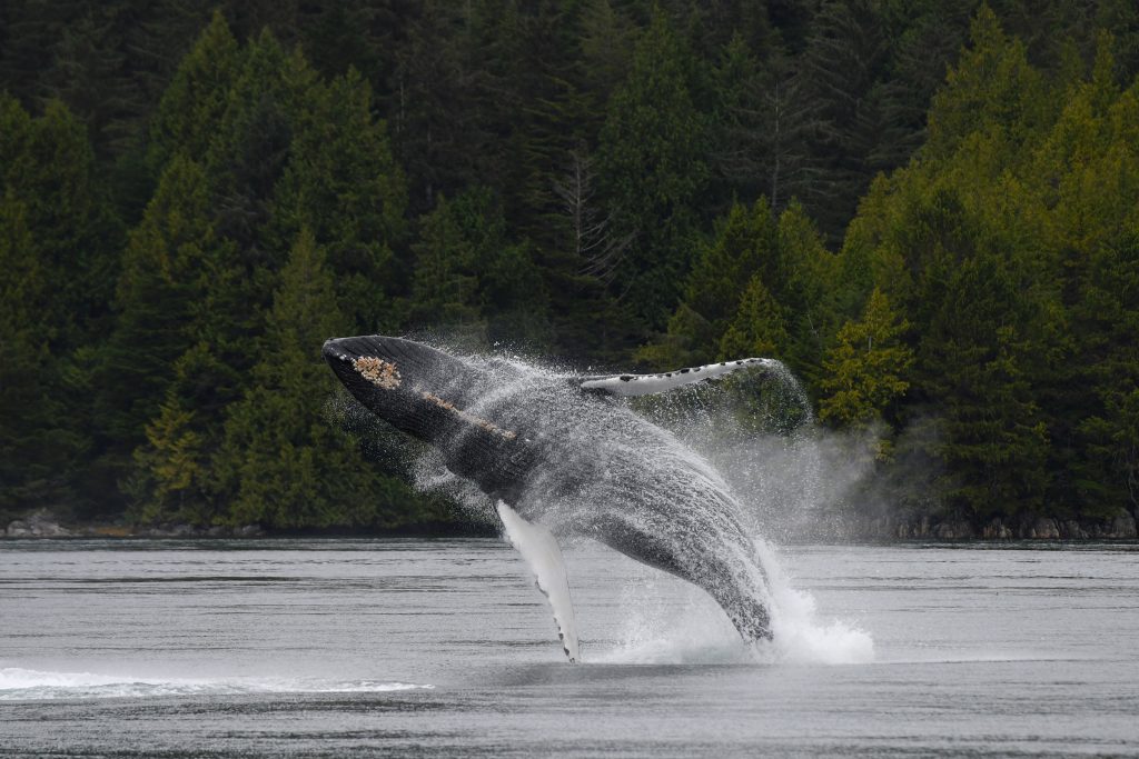 Malheureusement, les écosystèmes de la côte nord font face à des menaces croissantes. L’augmentation du trafic naval, la surexploitation des poissons, la perte d’habitat, le réchauffement des eaux, la pollution et le bruit sous-marin chronique exercent une pression croissante sur de nombreuses populations marines, dont certaines sont déjà en déclin. Les stocks de harengs du Pacifique restent vulnérables, et les migrations de saumons dans des rivières comme la Skeena et la Nass ont montré des rendements inquiétants de faibles. Les modifications des rivages et la pollution perturbent des habitats critiques pour les poissons et les invertébrés, tandis que les interactions des navires avec les baleines – qui traversent ces eaux pour se nourrir, se reproduire et élever leurs petits – ont augmenté ces dernières années. Ce qui nous donne de l’espoir, c’est que les efforts de conservation de la côte nord portent leurs fruits.