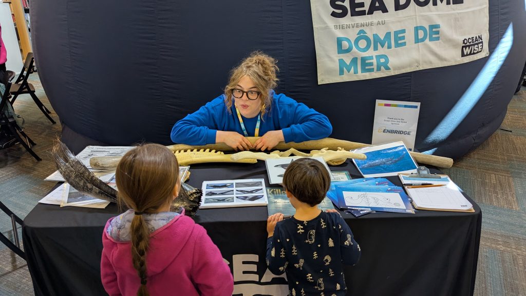 Notre visite a commencé au centre-ville de Bramalea, où nous avons engagé des conversations avec les acheteurs sur les animaux marins des tropiques à la baie d’Hudson voisine, en discutant de la magnificence des animaux, grands et petits. De Bramalea, l’équipe s’est rendue à Hamilton pour partager l’Ocean Wise Sea Dome avec les élèves de l’école primaire Bennetto. Les élèves ont été ravis d’en apprendre davantage sur le lien entre les systèmes d’eau douce locaux et l’océan du monde, exprimant leur intérêt à agir dans leur communauté pour protéger notre planète bleue.