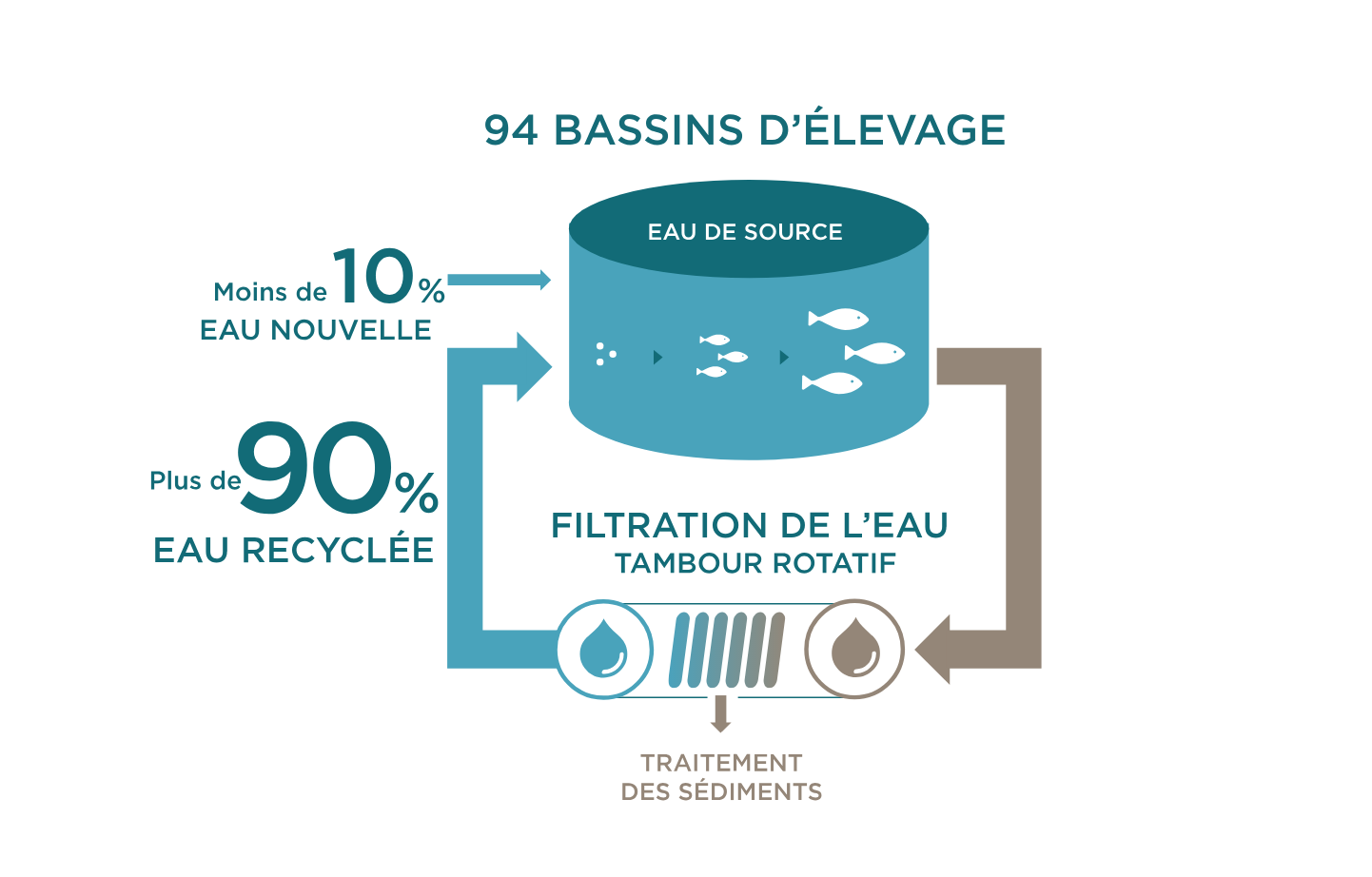 L’aquaculture en circuit fermé consiste en l’élevage des poissons dans un système de confinement qui forme une barrière entre les truites et l’environnement naturel.