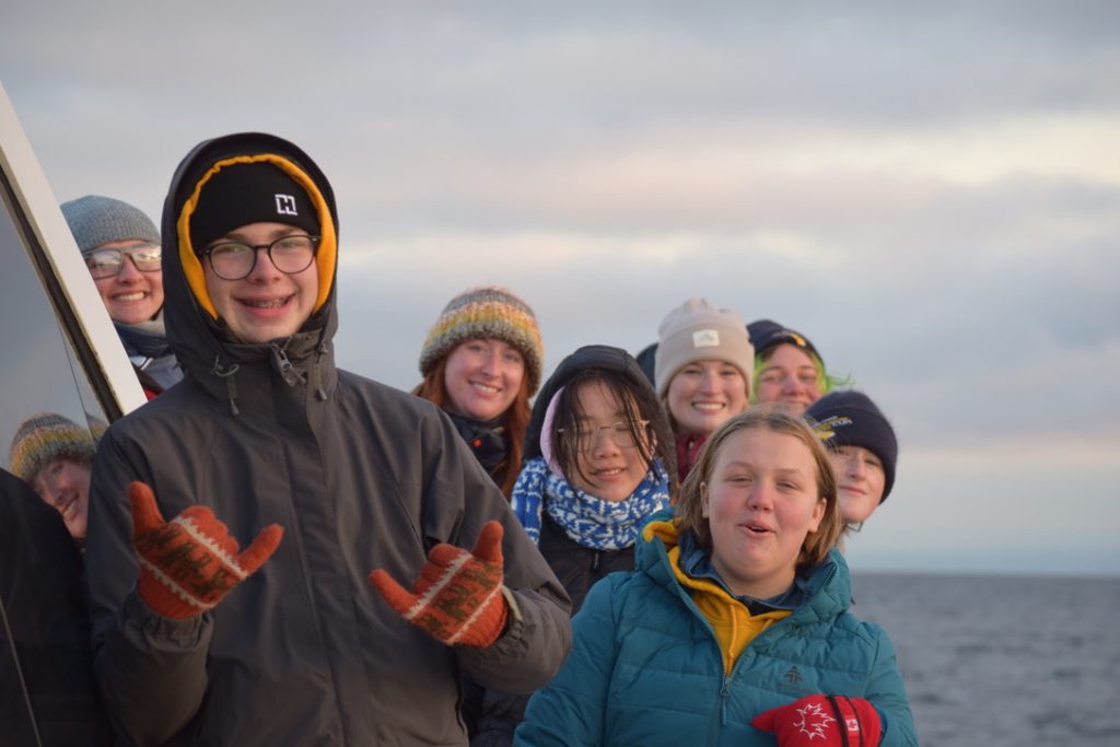 Avant notre départ, Aaron Purdy, de l’initiative Ocean Wise pour les baleines, nous a guidés à travers une activité. Quatre groupes ont discuté des problèmes de conservation des baleines, notamment le bruit anthropique, la pollution, la surpêche et la destruction de l’habitat.
