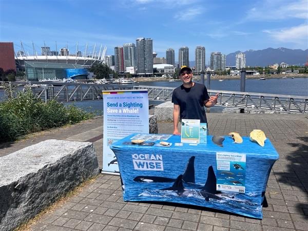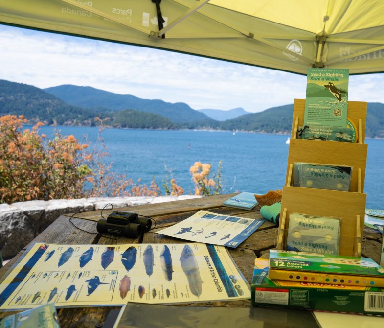 - la planification et la tenue d’événements de sensibilisation du public pour sensibiliser les habitants aux lois/directives relatives aux mammifères marins, et encourager le signalement des observations de cétacés via l’application WhaleReport