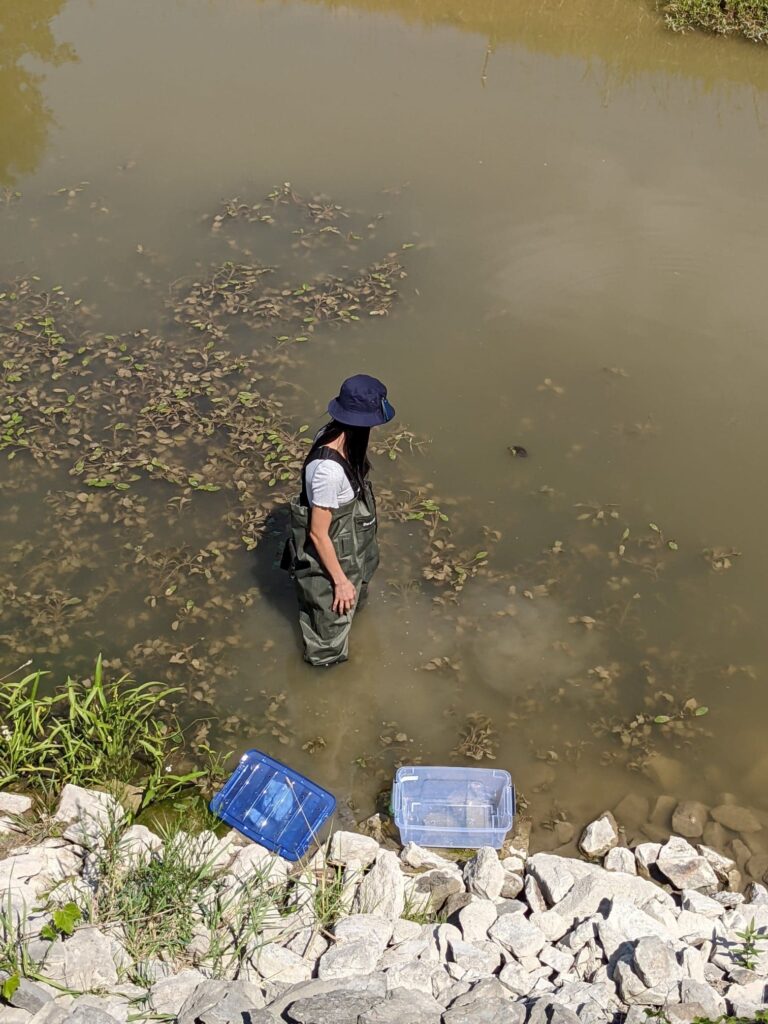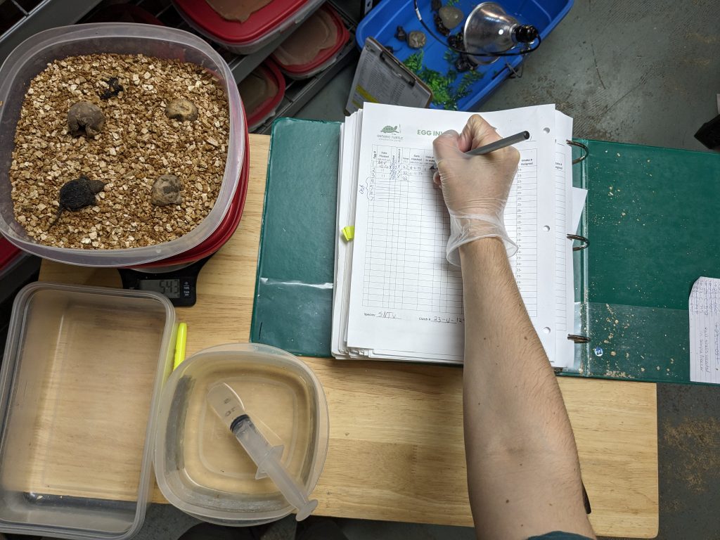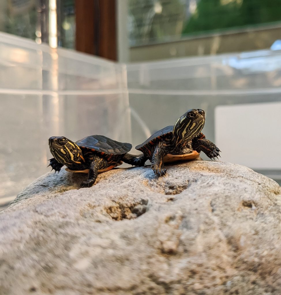 Les participants d’Ocean Pathways font partie intégrante de l’équipe médicale, éducative, de sensibilisation et d’engagement communautaire de l’OTCC. Le travail de Rahana et Isabel avec l’OTCC a impliqué de nombreux projets différents ! De l’élevage des tortues et des soins de rééducation des tortues blessées, des œufs et des nouveau-nés ; à organiser des visites, ateliers et programmes aux visiteurs du Centre d’éducation ; pour aider à gérer les comptes OTCC sur les réseaux sociaux. Tous les stages des participants impliquent beaucoup de soins pratiques aux tortues, ainsi qu’une grande partie de la sensibilisation et de l’éducation du public. C’est extrêmement important, car la plus grande menace pour les espèces indigènes de tortues d’eau douce en Ontario est l’homme, et l’éducation est un moyen majeur d’aider les tortues !