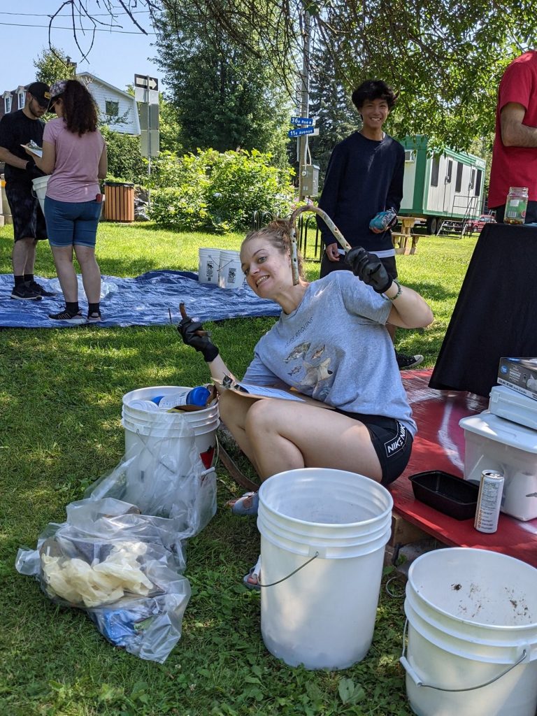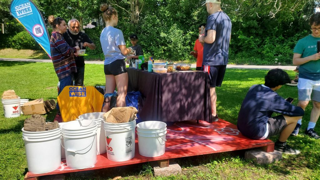 Le projet « Seaside Scrapbook » visait à sensibiliser les individus à la santé des océans par l’action directe (nettoyage des rivages) et des moyens littéraires (un album). La partie de nettoyage du littoral a eu lieu le 23 juillet 2023. Les lieux ciblés étaient la Berge de l’Anse et la Berge aux Quatre-Vents, avec un stand Ocean Wise installé à chacun d’eux endroits au cours de l’après-midi. Bocaux et Co., un supermarché en vrac zéro déchet, a fourni des rafraîchissements et des collations aux bénévoles du nettoyage et aux passants. Les deux lieux ont été nettoyés sur une période de deux heures, après quoi une petite équipe a trié les déchets afin de pouvoir les éliminer correctement. Au total, 11 bénévoles ont collecté plus de 20 kilogrammes de déchets aux côtés des quatre ambassadeurs du pont océanique. Ils ont réussi à défricher près de 25 000 mètres carrés, soit 2,5 hectares, de ce littoral ; Ça fait presque cinq terrains de football ! La partie album a commencé immédiatement après le nettoyage. Il comprend 22 pages qui présentent le nettoyage mené en juillet (ainsi que quelques découvertes intéressantes de bénévoles), des faits sur la pollution à Montréal et dans le monde entier (par exemple la Grande parcelle de déchets du Pacifique), ainsi que des moyens de lutter contre la pollution dans nos cours d’eau (par exemple, nettoyages des rivages, pratiques de recyclage appropriées). Lors du parcours d’apprentissage urbain organisé à Montréal, QC, les ambassadeurs ont présenté leur travail d’un mois lors de l’événement Mixed Media au Centre Phi le 18 août 2023, ainsi qu’au Biodôme de Montréal le 19 août 2023. Ayant mobilisé plus d’un millier de personnes au cours de ces deux jours, les ambassadeurs ont réussi à sensibiliser le public à la pollution des mers et à lui fournir des méthodes pour y faire face.