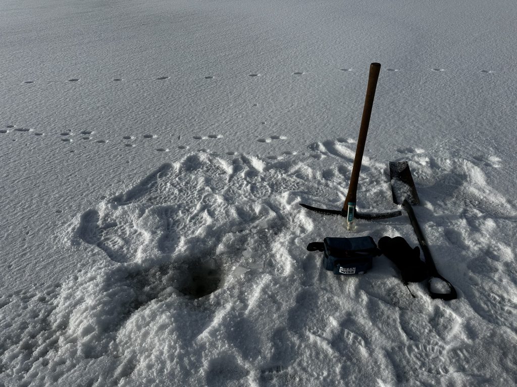Cette année, nous avons eu un schéma de température très instable qui a provoqué de nombreux gèlements et dégels, diminuant ainsi la stabilité de la glace. Il était parfois difficile de prélever des échantillons d’eau. Le changement climatique en action !