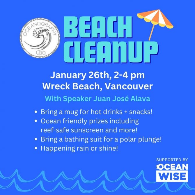 Nous avons effectué un nettoyage de plage à Wreck Beach, à Vancouver, en partenariat avec le club d’océanographie de l’UBC ! Nous avons également eu deux intervenants formidables (Indigenous Land Recognition for the Oceans et leader océanique dans les solutions microplastiques).